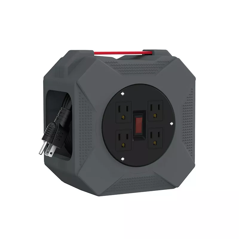 Multifunctional 4 outlets plastic cord reel 45ft ay maaaring magamit sa eksena kabilang ang silid -tulugan, sala at kusina. Sa figure ay maaaring ipasadya ang eksklusibong logo.